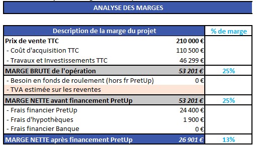 | Situation géographique du bien | Marge après financement limitée si vente au prix minimum |