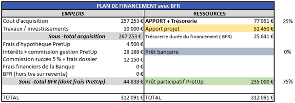 Le montant financé par PretUp représente 75% du coût total de l’opération.