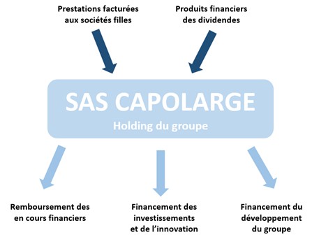 Société mère du groupe, la SAS CAPOLARGE tire ses revenus via :