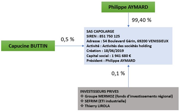 Monsieur Philippe AYMARD est actuellement le Président de la SAS CAPOLARGE dont il détient 99 % des titres.