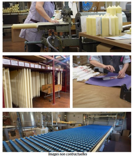 L’entreprise fabrique essentiellement des cierges et des lumignons pour les cultes et pour les événements liturgiques ou d’illuminations. Cette activité représente environ 80 % du chiffre d’affaires. Sa souplesse de production et son offre conséquente lui permettent de s’adapter à la demande des clients. L’entreprise personnalise également les visuels apposés sur les bougies.