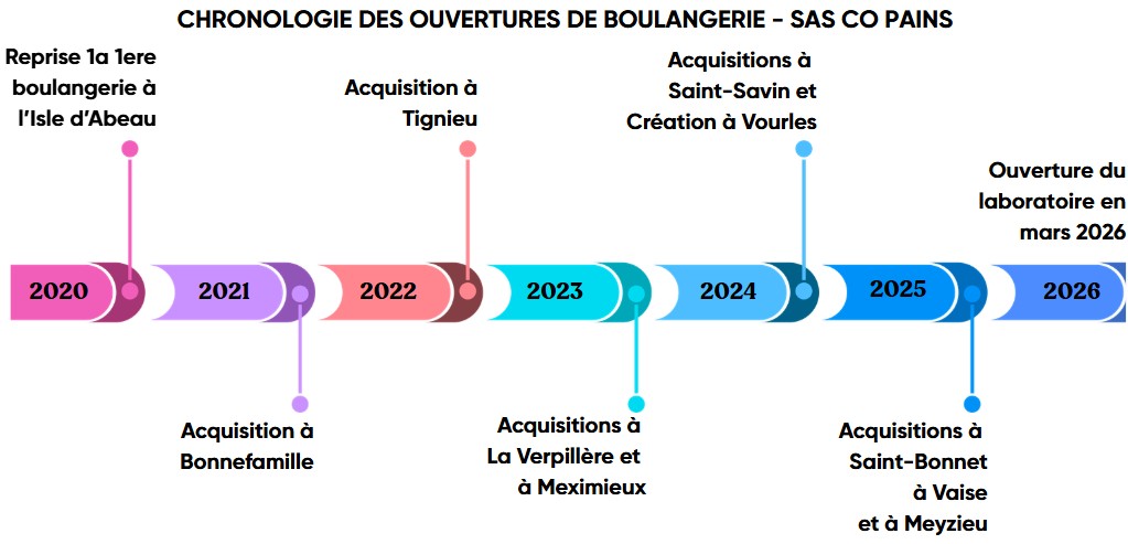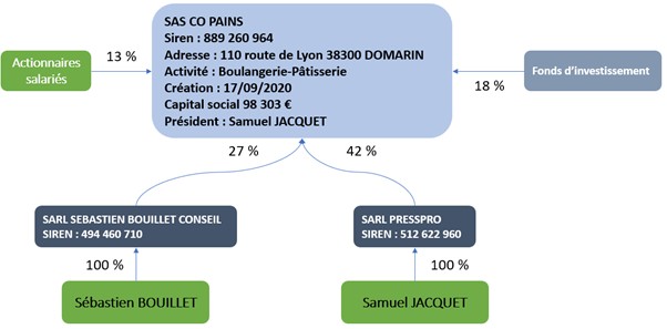 Monsieur Samuel JACQUET et Monsieur Sébastien BOUILLET se sont associés en 2020 via la SAS CO PAINS (SIREN : 889 260 964) afin de développer un réseau de boulangeries-pâtisseries en périphérie de la métropole de Lyon.