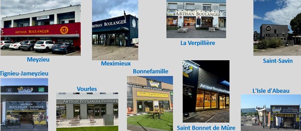 A ce jour, la société exploite 10 établissements à L'Isle D'Abeau, à Bonnefamille, à Tignieu-Jameyzieu, à La Verpillière, à Meximieux, à Vourles, à Vaise, à Saint-Savin, à Saint-Bonnet et à Meyzieux . Les boulangeries sont localisées dans des emplacements de premier choix dans des zones commerciales à fort passage où il est facile de stationner. Tous les établissements disposent d’espaces et de tables pour se restaurer sur place.
