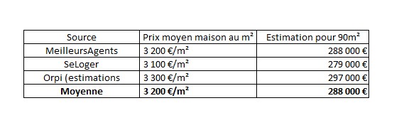 Le prix moyen observé pour une maison à Saint-André-de-Corcy se situe autour de 3 200 €/m², ce qui donne une valeur indicative d’environ 288 000 € pour une maison de 90 m² (hors valorisation spécifique du terrain et du sous-sol).