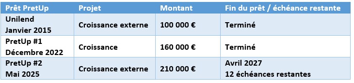 La société a bénéficié de plusieurs financement PretUp et Unilend ces dernières années :